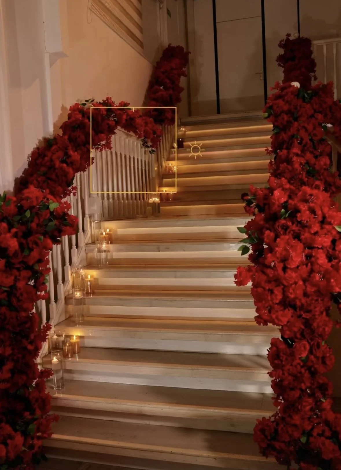 Optioneel: Kaarsen op de grond, Toevoeginskleur, Vallende bloemen aan de uiteinde.