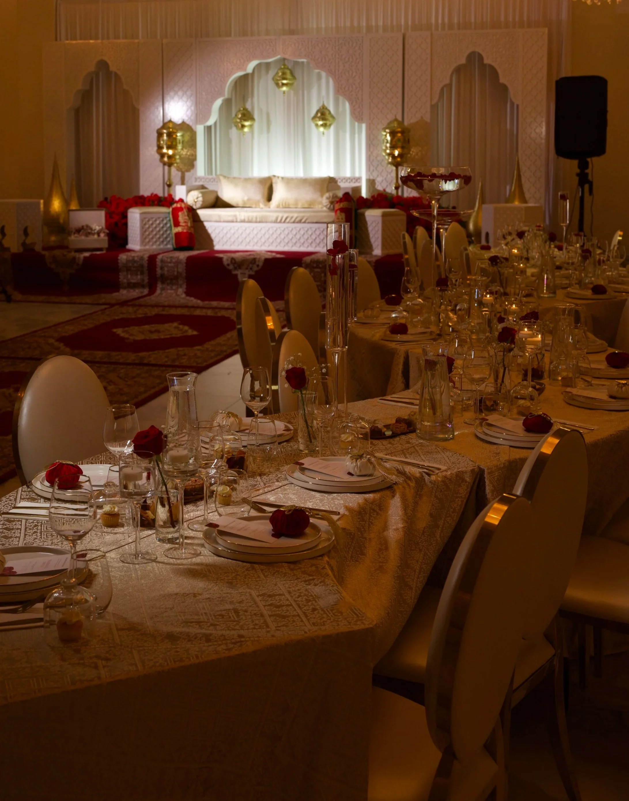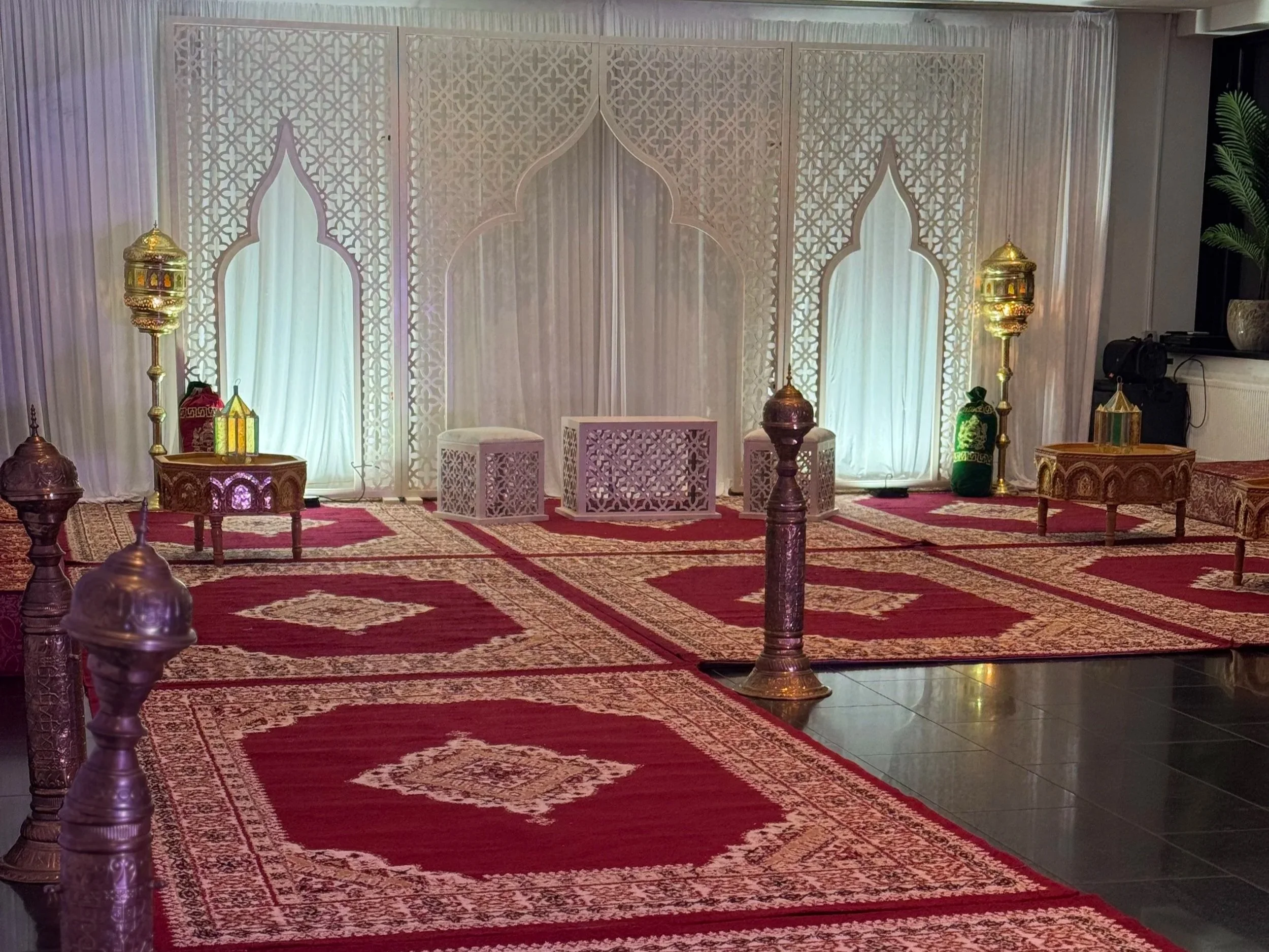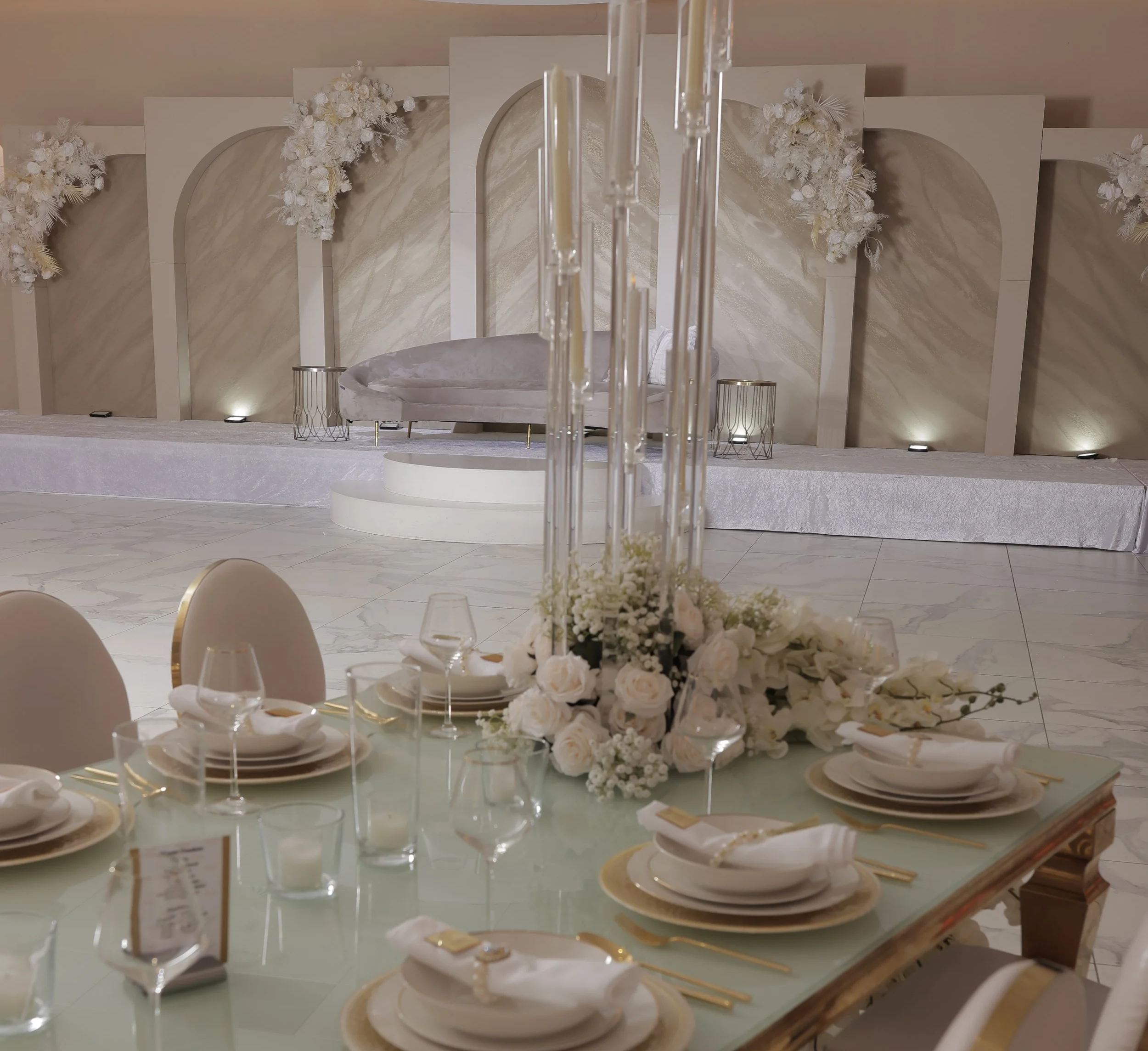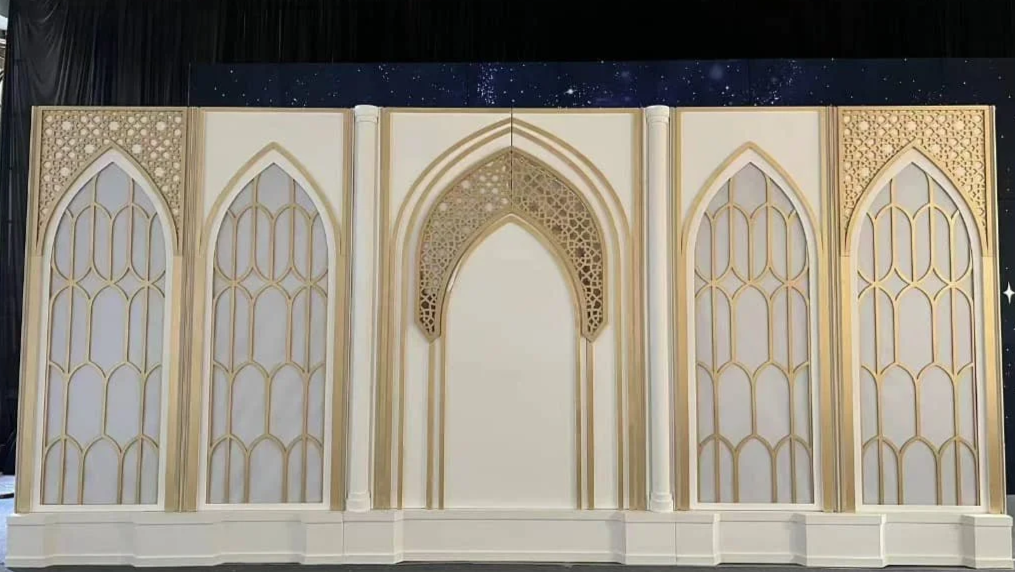 Here you will find our various design stages. All our designs are created by our designers themselves to achieve a beautiful end result. These stages all come with a bridal bench, white flooring, lighting, and necessary accessories (excluding podium and podium stairs).