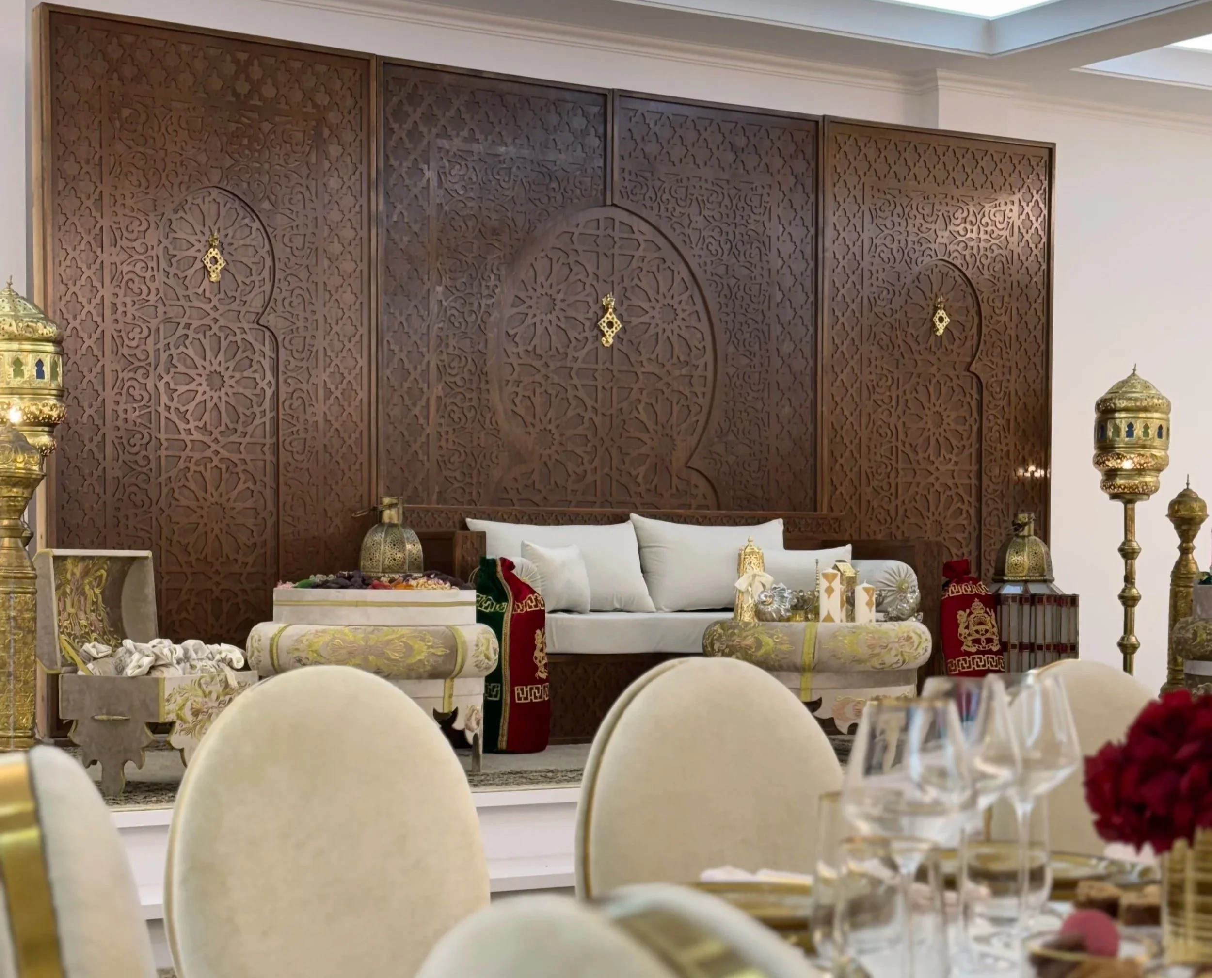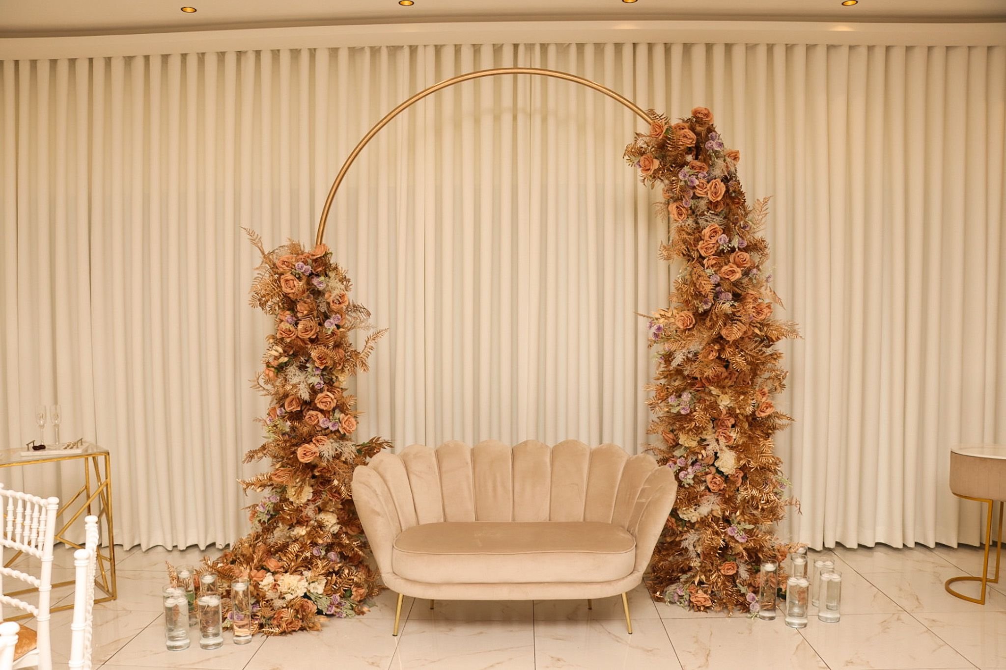 Extra options: Choose your own type and color of flowers, Pilars, curtains color and sofa.