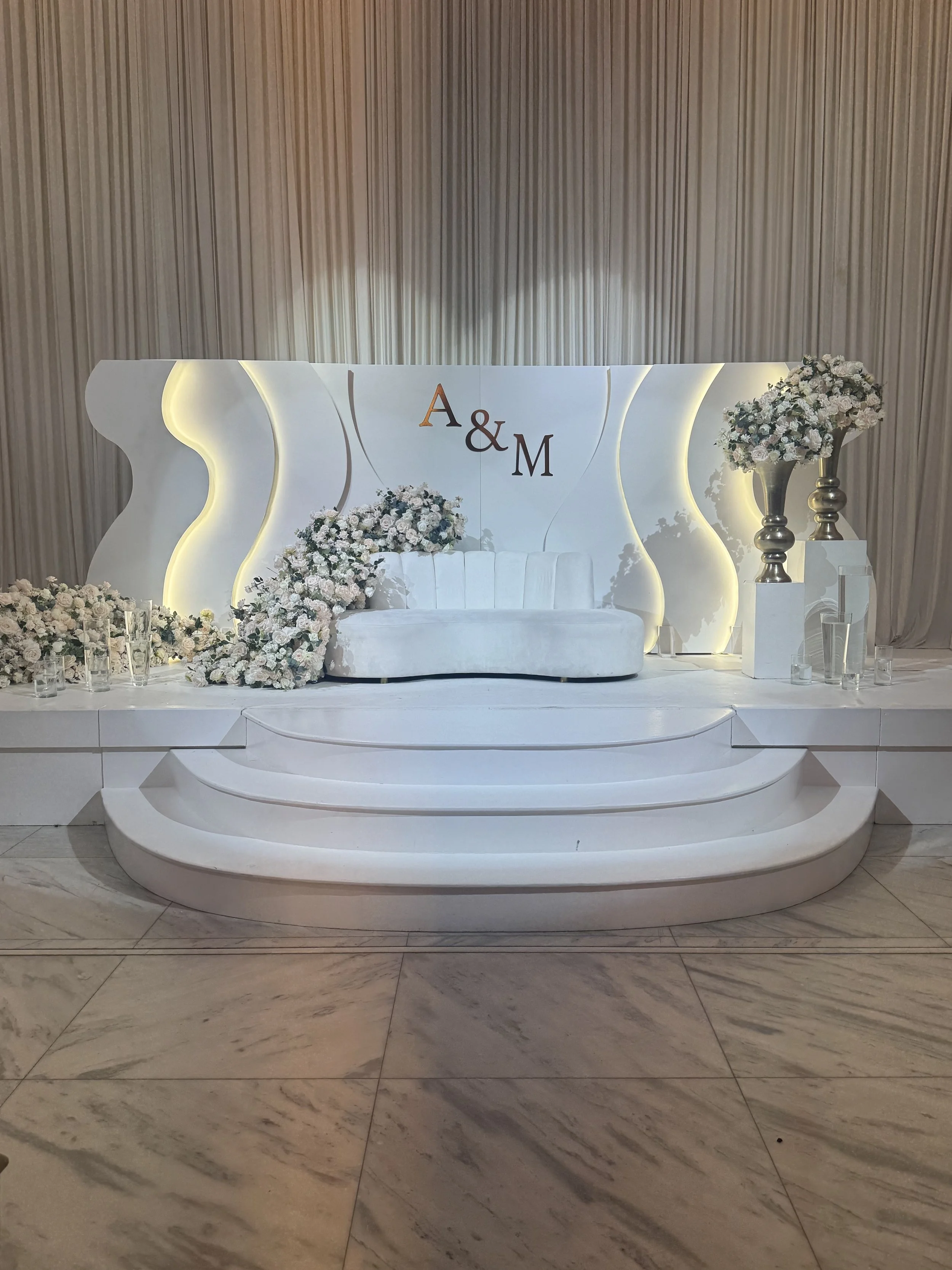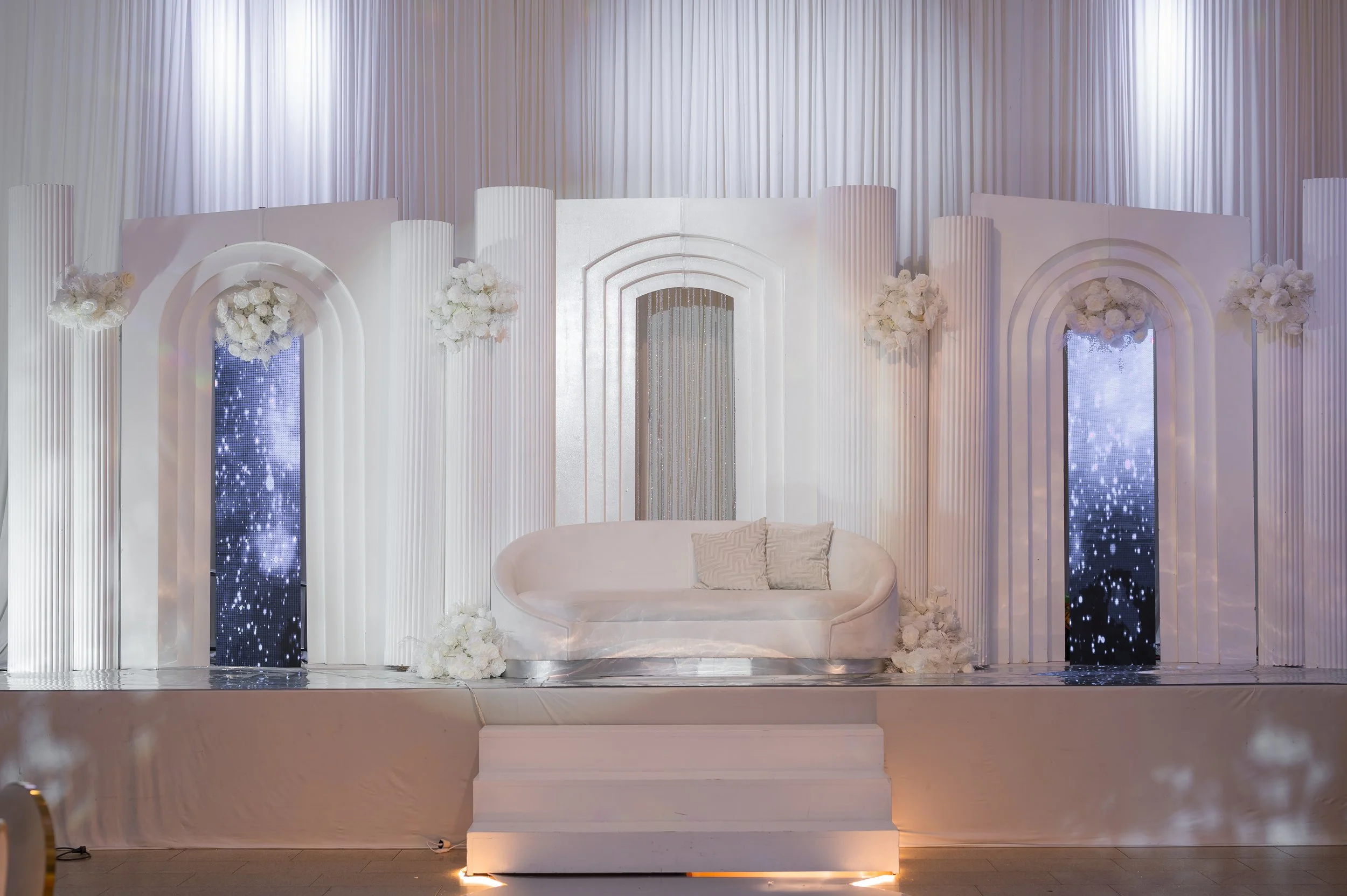 This product includes a bridal sofa, white underlay, lighting and necessary accessories (excluding stage and stage stairs).